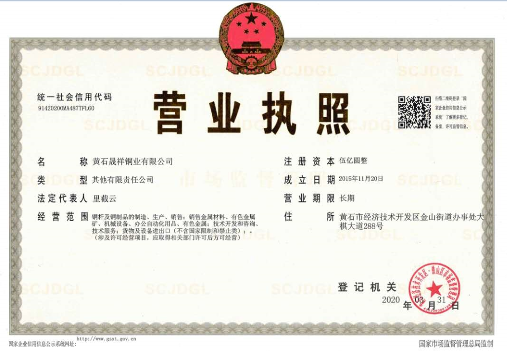 黃石晟祥銅業(yè)有限公司系大冶有色金屬集團(tuán)控股有限公司絕對(duì)控股、黃石市經(jīng)濟(jì)技術(shù)開(kāi)發(fā)區(qū)所屬?lài)?guó)資公司參股的國(guó)有全資企業(yè),公司成立于2015年,注冊(cè)資本金5億元。公司采用世界一流的美國(guó)南線(xiàn)公司( Southwire Company)SCR7000連鑄連軋生產(chǎn)線(xiàn)和意大利桑浦公司雙頭銅大拉絲生產(chǎn)線(xiàn),主要產(chǎn)品為Φ8mm低氧光亮銅桿和Φ2.6mm電工圓銅線(xiàn),年產(chǎn)能力Φ8mm銅桿30萬(wàn)噸/年、Φ2.6mm銅線(xiàn)4萬(wàn)噸/年,達(dá)產(chǎn)后年?duì)I業(yè)收入過(guò)百億元、利稅過(guò)5000萬(wàn)元,是湖北省打造千億元有色金屬產(chǎn)業(yè),黃石市“生態(tài)立市、產(chǎn)業(yè)強(qiáng)市、建成鄂東特大城市”,大冶有色金屬集團(tuán)控股有限公司延伸銅產(chǎn)業(yè)鏈和推進(jìn)千億元企業(yè)升級(jí)版的重點(diǎn)項(xiàng)目之一。公司位于******開(kāi)發(fā)區(qū)——湖北黃石經(jīng)濟(jì)技術(shù)開(kāi)發(fā)區(qū)工業(yè)園內(nèi),占地208畝,環(huán)境優(yōu)美,交通便捷。2017年至2019年、2021年榮獲 “湖北企業(yè)100強(qiáng)”稱(chēng)號(hào)。